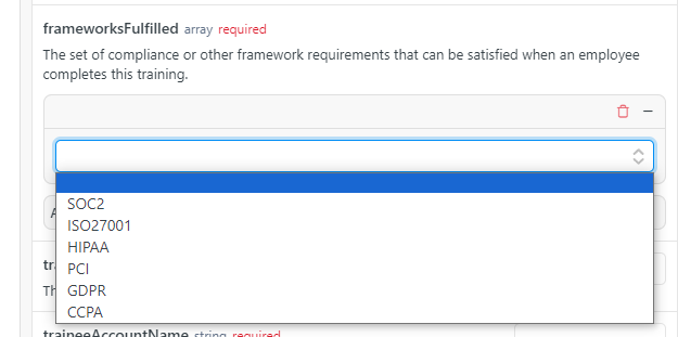 If you are using custom training modules with Vanta, it's essential to map the new module to a Vanta-supported compliance framework. This is a Vanta enforcement measure and cannot be bypassed. If there is no mapping in place for a custom module, it will not be recorded in Vanta.