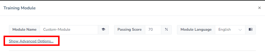 1. In the CanIPhish module creation/editor wizard, select "Show Advanced Options" on your custom module.