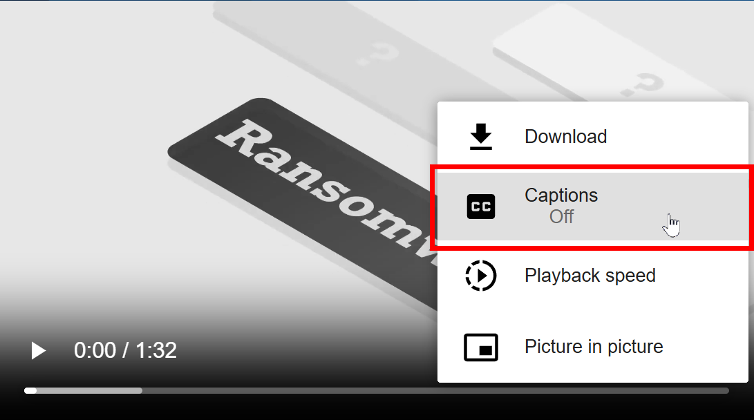 Individual users can enable closed captions while watching a training module video. Here’s how: