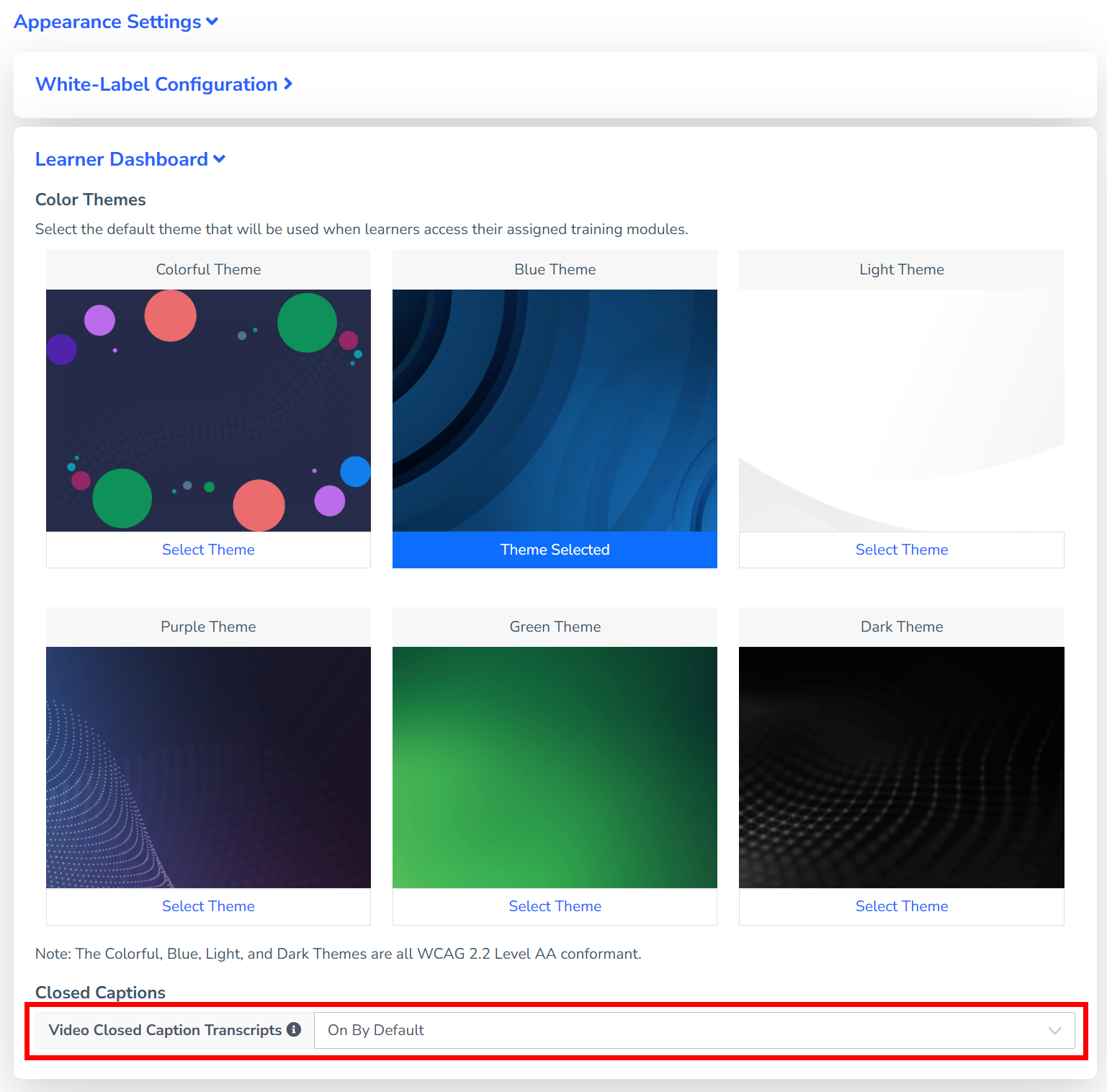 Admins can configure the platform to serve all training videos with closed captions enabled by default. This ensures a consistent learning experience for all users.