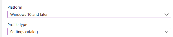 Profile type: Settings catalog - Click Create