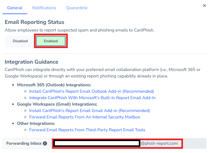 Google Workspace - Forward Phish Reports From Internal Security Mailbox
