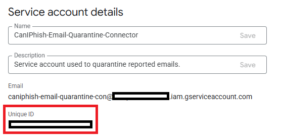 1.5. Click into the newly created Service Account and copy or make a note of the Unique ID. We'll need this later.