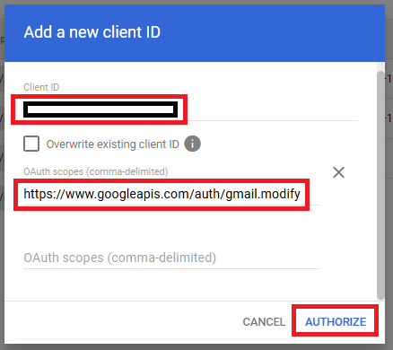 2.5. In the Client ID field, enter the Service Accounts Unique ID copied earlier (In Step 1.5).