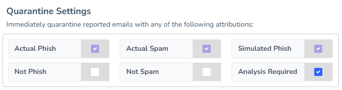 You're in luck! If you've configured CanIPhish to quarantine emails that have an attribution of "Analysis Required", and then later mark those emails as "Not Phish" and "Not Spam", CanIPhish has built-in functionality to restore these emails, so long as those attribution statuses aren't marked for quarantining. For an example of the recommended configuration, please refer to the screenshot below: