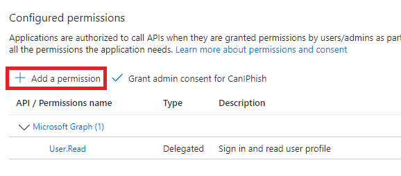 Why does CanIPhish require the requested Microsoft Graph API permissions?