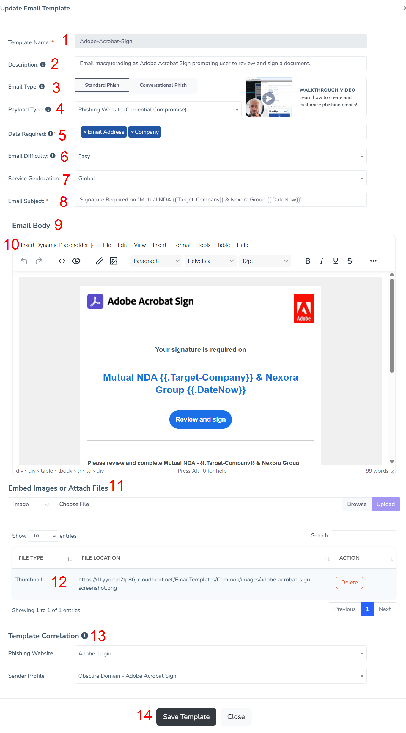 - Thumbnail: If a thumbnail is added, it will be displayed in your phishing library as the email thumbnail.