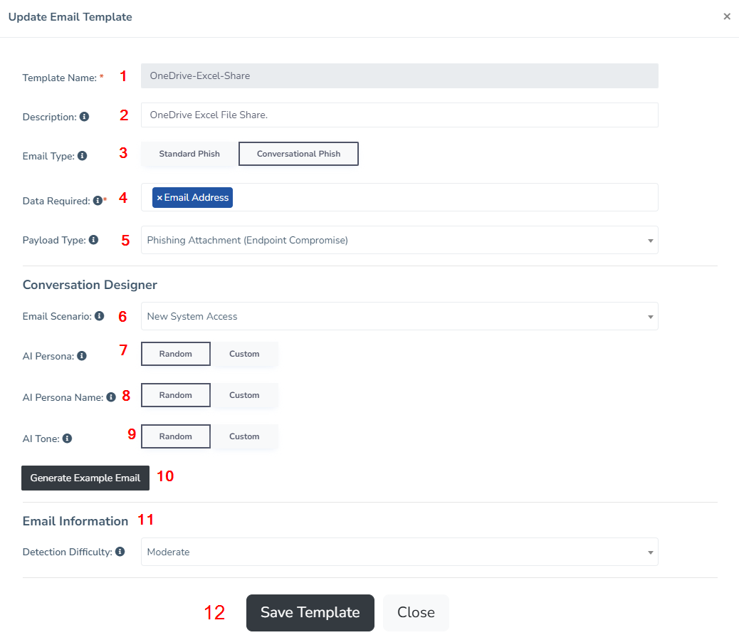- Detection Difficulty: Determines how difficult this phishing email is to detect.