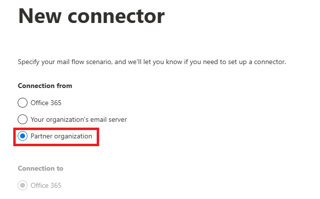 # - Connection from: Partner organization -> Connection to: Office 365