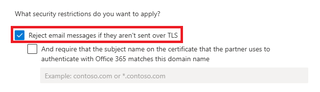 - Reject email messages if they aren't sent over TLS