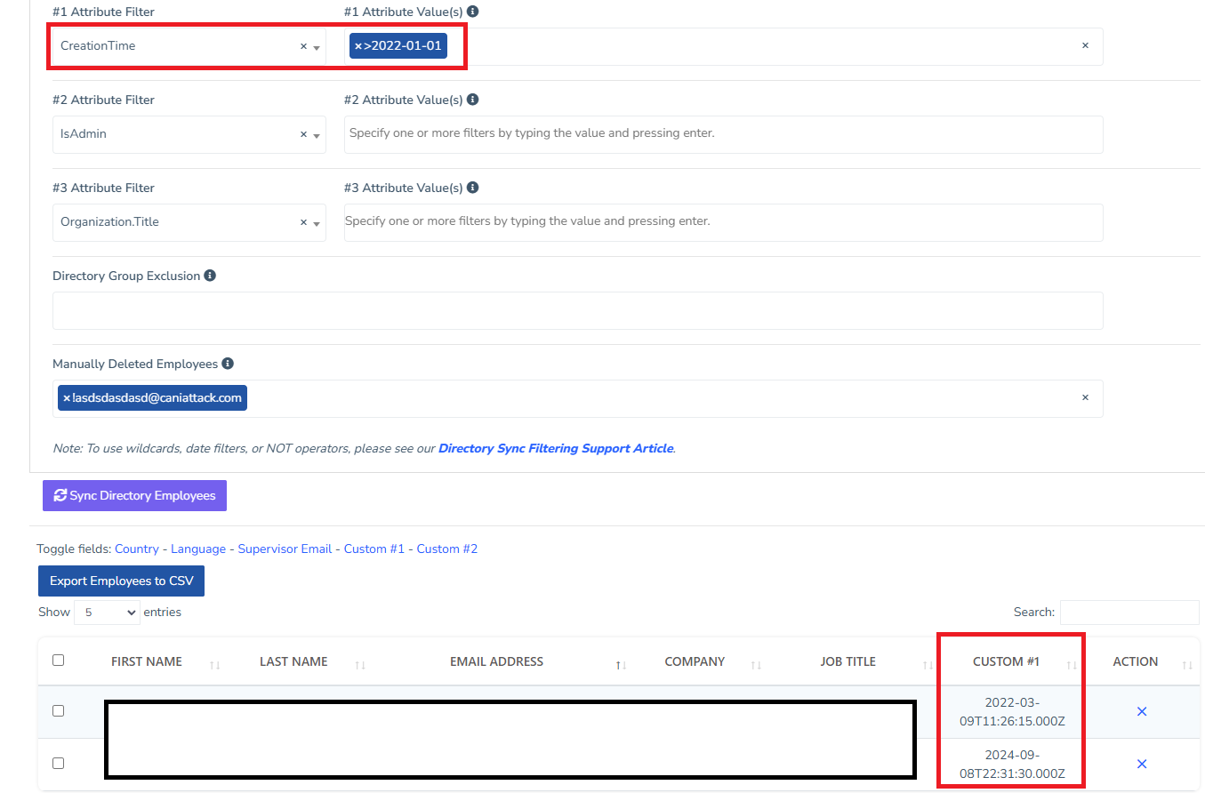 Note: In the example above, the "CUSTOM #1" field has been populated with data from the "CreatedDateTime" Entra ID attribute for demonstration purposes.