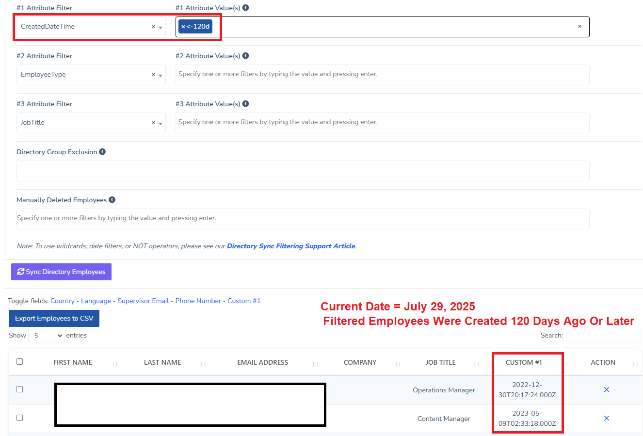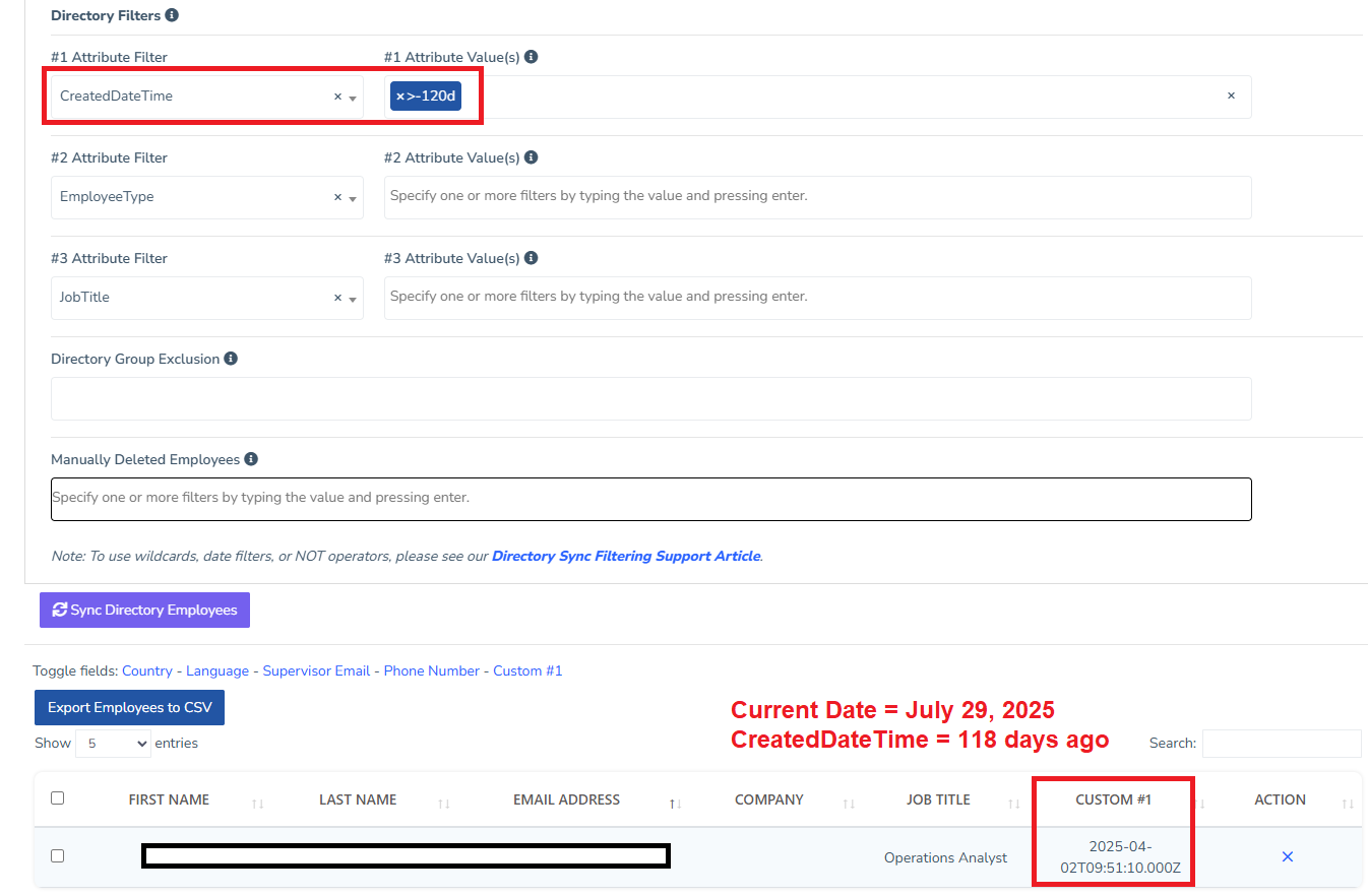 Google Workspace Less Than Filter - Employees with a creation date less (older than) than 120 days ago (e.g. employees who have been with the organization for atleast 4 months):
