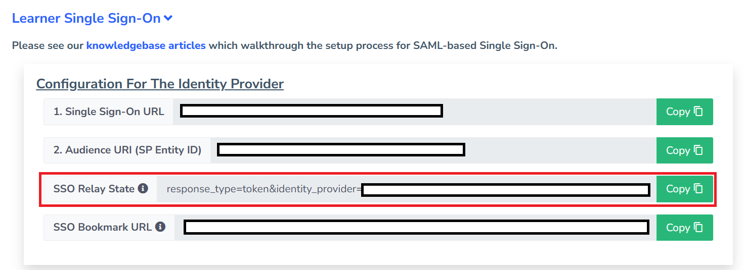 1.2. Click on Authentication Settings > Learner Single Sign-On to show your SSO configuration.