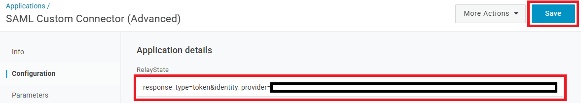4.2. Paste the "SSO Relay State" value copied in Step 3.9 into the "RelayState" field and then click Save.