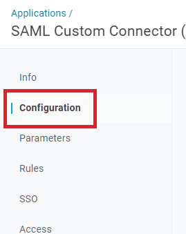 4.1. Jump back into the Application created in OneLogin and click on the Configuration menu item on the left panel.