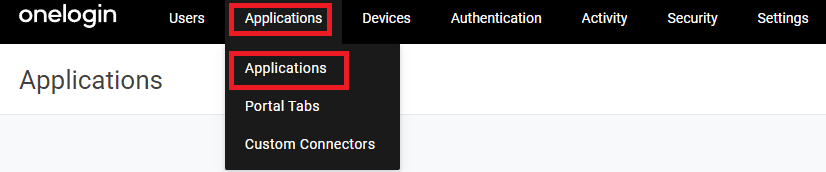 2.2. In the OneLogin menu (up the top), click "Applications" and then click the "Applications" sub-heading.
